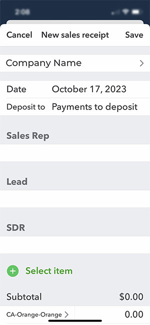 For those who conduct business on the go, the QuickBooks mobile app makes it simple for users to create sales receipts for your customers. By clicking on the plus (+) sign at the bottom of the screen and selecting "Sales Receipt," you can access a form similar to what you'd use on your desktop computer. The layout may differ, but the form's functionality remains intact.